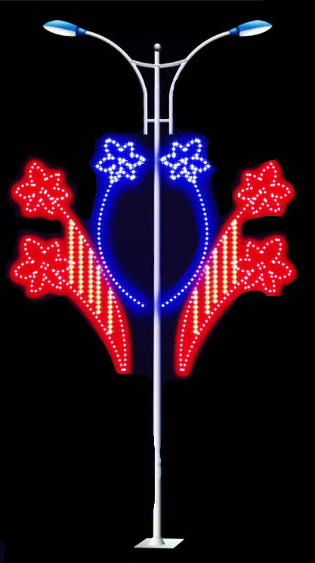 LED燈桿造型,廣萬(wàn)達(dá)照明科技有限公司繼LED燈光隧道后,重磅推出的用于城市街道的LED夜景亮化產(chǎn)品,將LED雙面串燈創(chuàng)造性的運(yùn)用到燈桿藝術(shù)景觀,巧妙地借助燈桿載體,使照明與景觀渾然一體、光色與文化和諧相融,讓街道呈現(xiàn)出開(kāi)闊而悠揚(yáng),美麗而豪壯的現(xiàn)代城市氛圍