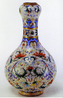 在中國古代,由于琺瑯器初從大食國(大食為唐宋時代中國對阿拉伯國家的總稱。起源于波斯語稱阿拉伯人為Tazi的音譯。有白衣大食(661-749),以敘利亞大馬士革為首都,稱倭馬亞王朝;有黑衣大食(749-1158),以巴格達為首都,稱阿拔斯王朝。910年以后又有以開羅為首都的法蒂瑪王朝;阿拔斯王朝以后則是塞爾柱王朝(1158-1258))傳來,因此稱之謂“大食窯,鬼國窯”。之后雖稱謂因譯名不統(tǒng)一而出現(xiàn)多種不同寫法,如“佛郎嵌”、“鬼國嵌”、“法藍”、“法郎”、“拂林”、“佛郎”、“富浪”等,但發(fā)音基本一致,基本統(tǒng)一為“琺瑯”。