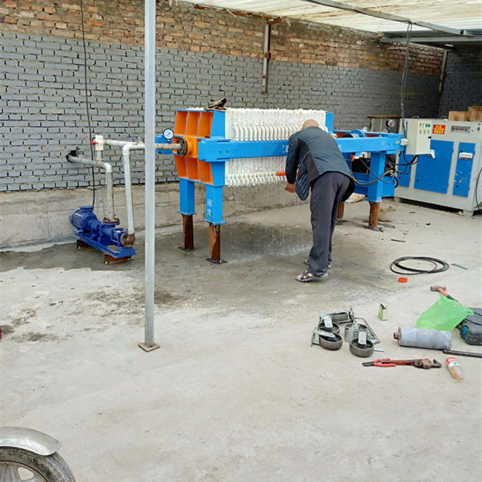 過濾部分由若干塊濾板、濾框組成,且按一定順序排列在主梁上,濾板與濾框之間濾布。