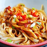 4.油潑辣子: 鍋里倒入比平時炒菜幾倍的油燒熱,放入花椒、干辣椒、桂皮、丁香、豆蔻、八角、香葉、紫草、香茅草小火慢慢炒至金黃色并且香味四溢關火。辣椒粉和白芝麻混合好的碗中倒入一半的熱油攪勻以后 再倒入剩下的一半熱油即成油潑辣子。