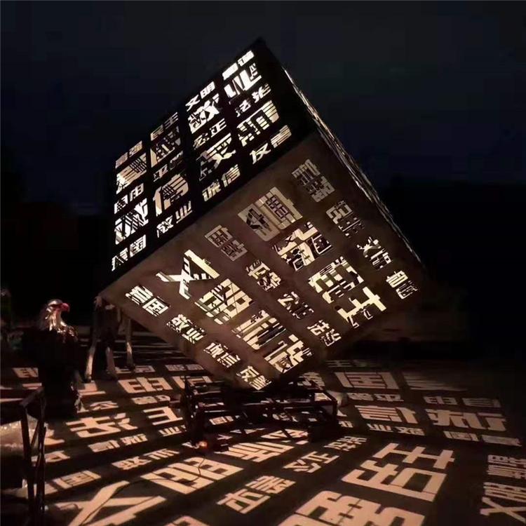 正方體是六個(gè)完全相同的正方形圍成的立體圖形,它的側(cè)面和地面都是正方形的直平行六面體,它的棱長(zhǎng)都相等,正方體是特殊的長(zhǎng)方體。不銹鋼立方體鏤空雕塑的特點(diǎn)就是鏤空?qǐng)D案可以定制,可以根據(jù)相關(guān)主題定制不同的鏤空內(nèi)容,可以是文字,也可以是圖案等等。隨著城市的不斷建設(shè),不銹鋼雕塑的應(yīng)用也越來(lái)越廣泛,它們美化著我們的城市環(huán)境,利用材質(zhì)的優(yōu)勢(shì)給我們的城市環(huán)境做出了很大的貢獻(xiàn)。它在城市雕塑中所占的份額越來(lái)越大,生活中我們到處可以見(jiàn)到不銹鋼雕塑。不銹鋼正方體雕塑是城市的一個(gè)名片,用于城市的裝飾和美化,給城市的人們帶來(lái)新的生活新的氣象。