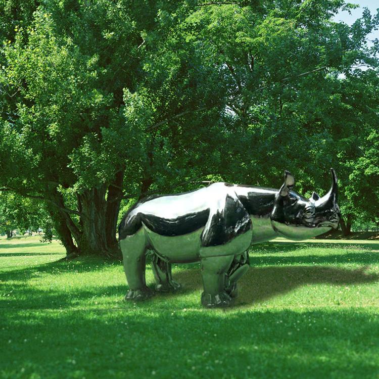 不銹鋼犀牛雕塑并不多見,畢竟犀牛在我國(guó)傳統(tǒng)文化中并沒有記錄和傳承,不像牛、馬、等動(dòng)物在中國(guó)傳統(tǒng)文化中都有著美好的寓意。