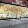 我們剛在一家寺廟內繪制了一幅觀音救難圖壁畫,有救水難圖,救墜落高峰難圖,救惡人追趕難圖,救怨賊圍