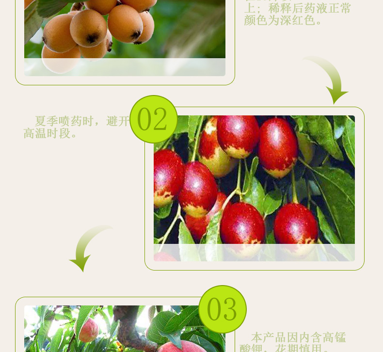 備注:噴霧方案在果樹嫩葉、幼果期等敏感時期慎用。