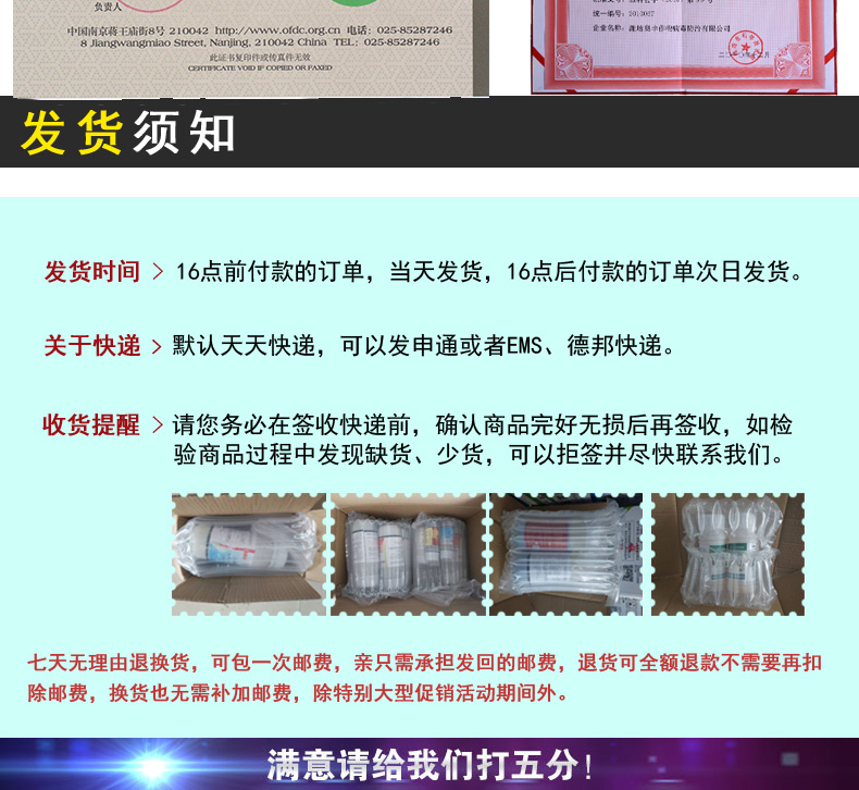 4.本品應(yīng)以原包裝放置于陰涼干燥處,避免陽光直射,搬運及運輸過程中,輕拿輕放。