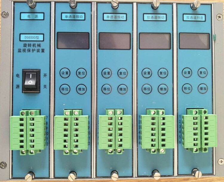 江陰鼎智DS6000型掛壁框架式振動監(jiān)測保護裝置是一種小型多通道旋轉機械監(jiān)控保護裝置,它為各種小型旋轉機械提供多種參數(shù)測量及控制功能。各測量通道可按單通道或雙通道插件的形式自由組合,按要求靈活選配。由選配的監(jiān)測通道數(shù)量,決定裝置的寬度。