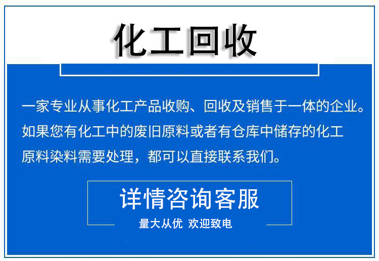 回收化學(xué)試劑:各種皮革皮毛助劑、紡織印染助劑、氧化鈷、氧化銅、氧化亞銅、氧化亞銅、碳酸鉀、碘化鉀。聚乙二醇、間苯二酚、白礦油、導(dǎo)熱油、
