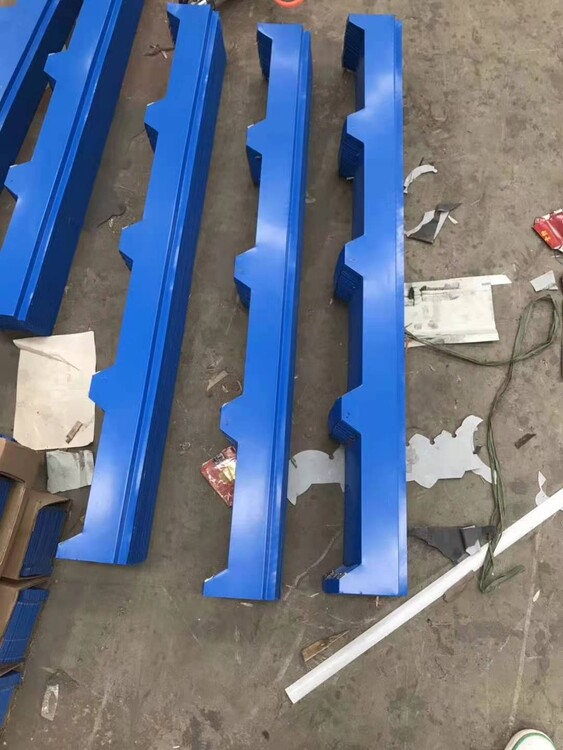 做一V字型材料,可選用不同的材料和規(guī)格,視實際情況而定.做接水處安裝在底部后在上面鋪放彩鋼瓦。