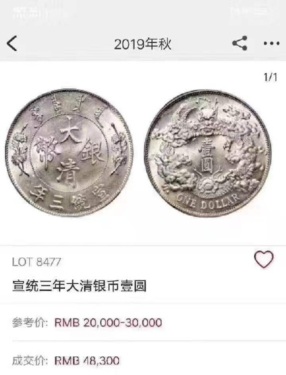 宣統(tǒng)年大清銀幣價(jià)值多少錢一個(gè) 宣統(tǒng)三年大清銀幣,是清末幣制改革的產(chǎn)物,版別多式。宣統(tǒng)三年大清銀幣有不同版式,其中長須龍、短須龍、大尾龍比較。 大清銀幣曲須龍,直徑4厘米,重28克,直齒邊。該幣正面珠圈內(nèi)為“大清銀幣”四個(gè)漢字,字體粗大,珠圈外上下緣分別為滿、漢文“宣統(tǒng)三年”四字,兩旁分列長枝菊花紋飾。背面“壹圓”二字居中,是一曲須龍自上至右向左再向右環(huán)繞一圈,下端是英文“壹圓”。 大清銀幣長須龍,直徑39毫米,厚2.1毫米,重26.7克,直齒邊。該幣正面珠圈內(nèi)為漢文“大清銀幣”四字,珠圈外上下為滿、漢文“宣統(tǒng)三年”字樣,左右兩側(cè)分列長枝菊花紋飾。背面“壹圓”二字坐中,是巨龍騰空,自上至左向右環(huán)繞一周,七根尾須向上,龍頭置上,兩根長須下垂,鼻梁突起,兩眼炯炯有神,龍紋精細(xì),火球在下,下方邊緣是英文“壹圓”。 大清銀幣光緒元寶 250.00-500.00萬 2015-07-11 拍賣結(jié)果 大清銀幣 350.00-700.00萬 2015-07-11 拍賣結(jié)果 大清銀幣·宣統(tǒng)三年 197.50-395.00萬 2015-05-15 拍賣結(jié)果 大清銀幣戶部造壹兩(中字 60.00-120.00萬 2012-05-14 拍賣結(jié)果 清·吉林、安徽省造三錢六 9,000-15,000元 2015-4-06 拍賣結(jié)果 清·宣統(tǒng)年造大清銀幣壹圓 16.00-18.00萬 2015-05-06 拍賣結(jié)果 清代 大清銀幣 280.00-280.00萬 2015-06-30 拍賣結(jié)果 大清銀幣 260.00-680.00萬 2015-06-30 有些錢幣升值太快,其實(shí)就是因?yàn)樵诠磐娴难芯慨?dāng)中,發(fā)現(xiàn)這些錢幣的實(shí)際存世極其,而越是的錢幣,越是在未來收藏領(lǐng)域里具有更高的價(jià)值表現(xiàn),而在拍賣會(huì)當(dāng)中,一旦這些錢幣在拍賣史上出現(xiàn)了,那么其價(jià)值自然就會(huì)被迅速抬升,在未來的拍賣當(dāng)中會(huì)有更高的關(guān)注度和追求度。