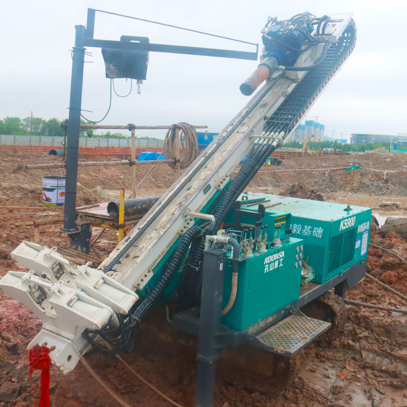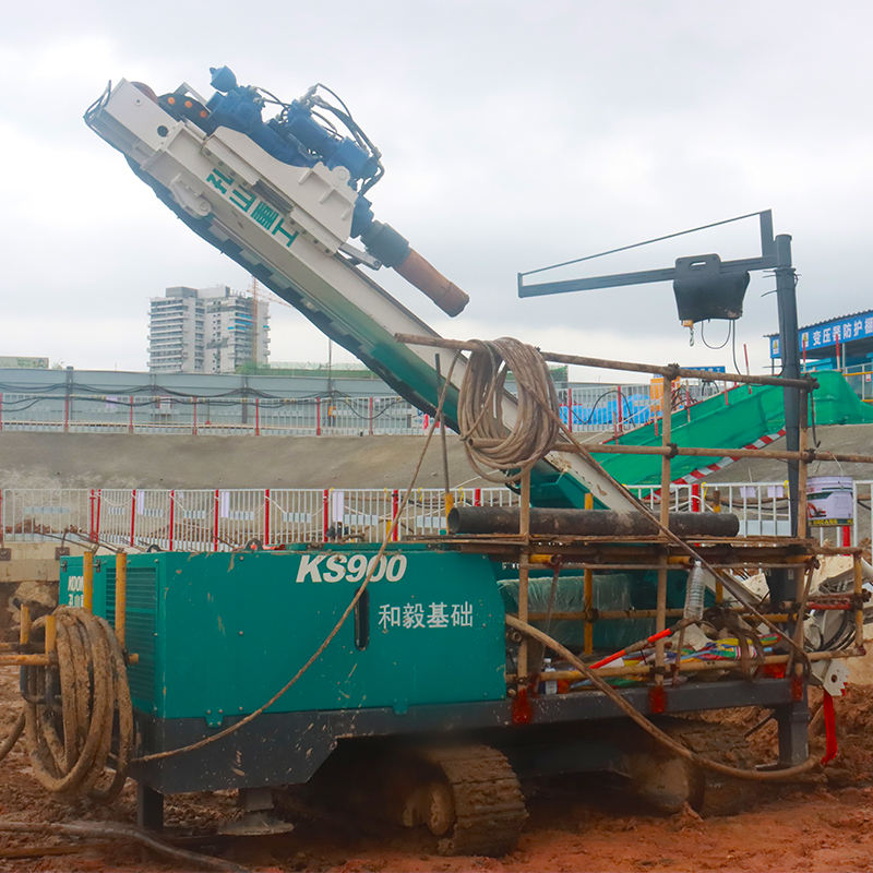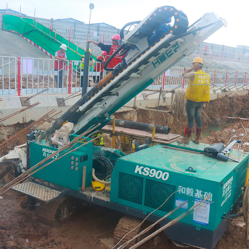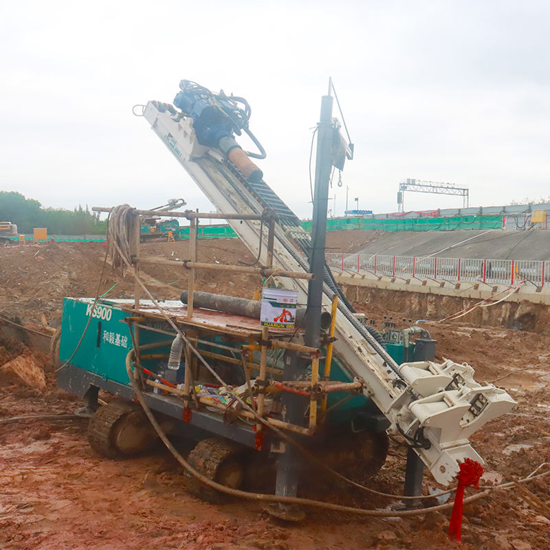 孔山KS900頂區(qū)錨桿鉆機動力頭,采用大功率頂部中擊,不用潛孔錘和空壓機就可以達到?jīng)_擊鉆進的效果,大扭矩、高轉(zhuǎn)速、強功率。針對砂卵石、碎石、夾石土、沙層等易塌孔要靠沖擊鉆進的地層,實現(xiàn)快速鉆進,確保成孔質(zhì)量。