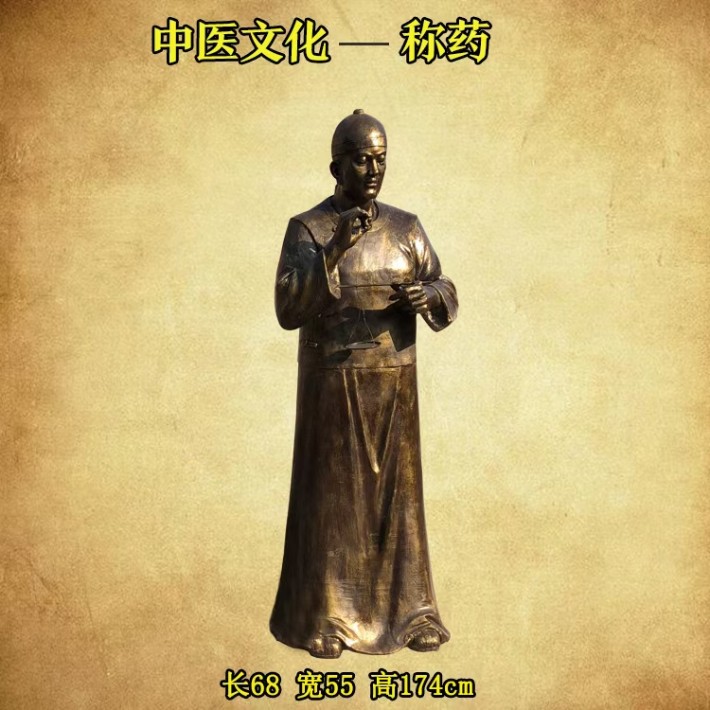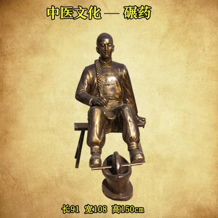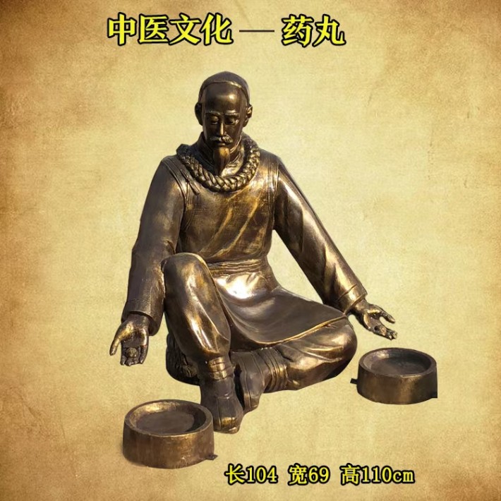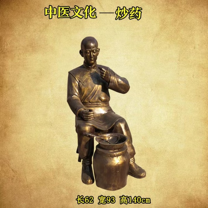 仿銅制藥人物雕塑整體色調采用的是仿銅色,顏色單一卻不單調符合歷史人物背景。單一仿銅色后期維護比較簡單方便。制藥雕塑價格主要跟產品尺寸大小、材質、運輸距離等因素有關,具體報價會以客戶圖紙為準。