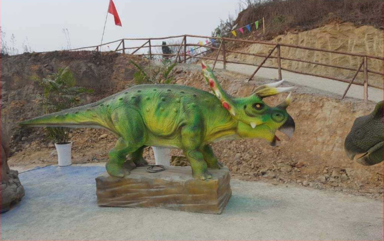 雕塑恐龍。他的制作工藝、材料分兩種,一個(gè)是玻璃鋼材質(zhì),一個(gè)是水泥雕塑。制作時(shí)還是需要鋼材作為恐龍的骨架,然后附上玻璃鋼、水泥雕塑的皮膚。這樣的恐龍可以做成不同的姿態(tài),栩栩如生。但是他做不了機(jī)械運(yùn)動(dòng)。他就是一只固定的恐龍雕塑。