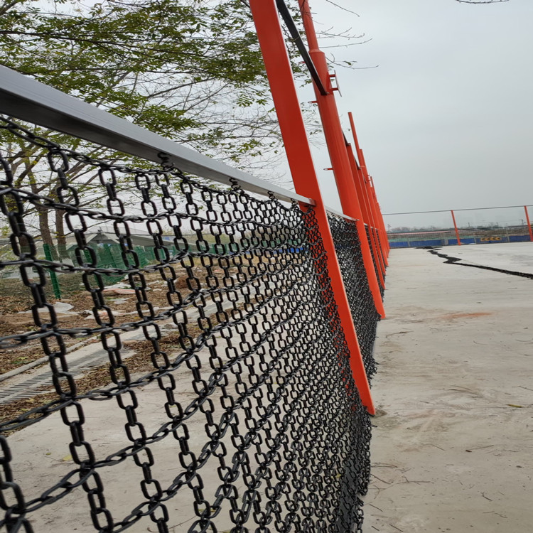 鐵鏈?zhǔn)角驁?chǎng)圍網(wǎng):是一種新型的球場(chǎng)地圍網(wǎng),屬于體育防護(hù)網(wǎng)的一種,由于鐵鏈本來(lái)網(wǎng)孔比較大,而且網(wǎng)面柔軟度高,所以這種圍網(wǎng)特別適合沖擊了大的大球場(chǎng)使用,如球、籃球。鐵鏈環(huán)環(huán)相扣不僅造型美觀防腐性能好,且可拆卸方便,可反復(fù)使用。
