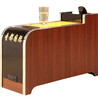 1、三氰板框架; 2、茶幾面采用大理石面,彎板亞克力板可絲印LOGO; 3、茶幾邊采用不銹鋼包邊,后面開門把所有開關(guān)集成在門里;