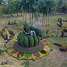 地表植物覆蓋率通常達(dá)到80%以上,不同顏色的植物密集分布在三維結(jié)構(gòu)上,終形成多彩的三維結(jié)構(gòu)?;▔こ?。通常,修剪和植物形成的造型藝術(shù)沒有立體花壇復(fù)雜,它們的審美價(jià)值也不如植物綠雕。