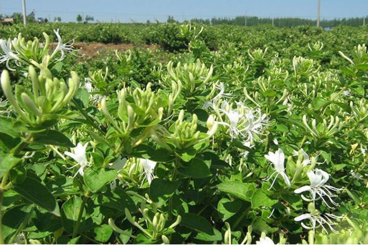 金銀花種植,是以優(yōu)良金銀花品種和傳統(tǒng)的樹形金銀花為基礎(chǔ),利用多倍體技術(shù),經(jīng)過多年的連續(xù)選育、淘汰,終培育出的一種性狀表現(xiàn)、遺傳性穩(wěn)定的新品種,是目前金銀花品系中生長穩(wěn)定、產(chǎn)量及藥用價(jià)值高、經(jīng)濟(jì)效益的優(yōu)良品種?!敖鸹?號(hào)”樹形金銀花,表現(xiàn)適應(yīng)性廣,抗逆性強(qiáng),開花早,花期長,質(zhì)量優(yōu),產(chǎn)量高。金銀花樹徒長枝少,大多裸芽也為短花枝,大水大肥也不徒長枝蔓;節(jié)間短,多數(shù)從節(jié)間開花,直立度與地面成45度角;生長快,50天可長到0.5厘米粗:采收省工,產(chǎn)量是傳統(tǒng)品種的2倍。樹型金銀花具有的經(jīng)濟(jì)性狀,花蕾碩大,花針長比親本大1倍,花瓣厚度是親本的2.17倍,千蕾鮮花重是親本的2.19倍,千蕾干花重是親本的1.79倍,花蕾中綠原酸含量等有效成分比親本大幅提高30%. 樹型金銀花除表現(xiàn)出高產(chǎn),等經(jīng)濟(jì)性狀外,還具有的適應(yīng)性和抗逆性,莖葉粗大,葉色濃綠,光合作用強(qiáng),莖葉絨毛粗硬而長,尤其幼葉絨毛粗長,極抗忍冬圓尾蚜,葉片蠟質(zhì)層厚 而多,根系發(fā)達(dá),具有的抗旱、耐瘠薄能力,具有很強(qiáng) 的水土保持、防風(fēng)固沙能力。